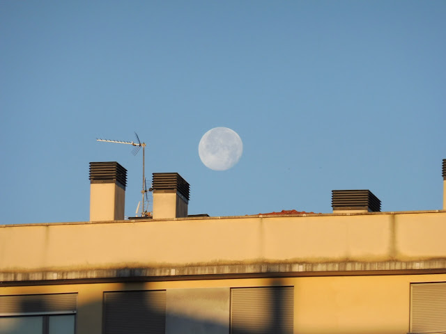 Os invito a ver estas fotografías que he hecho a la Luna en el comienzo de la noche (cuando ésta aún estaba a poca altura, ascendiendo sobre el horizonte este), en las que se le ve jugando y combinándose de manera muy estética con unas peculiares nubes que allí se encontraban.